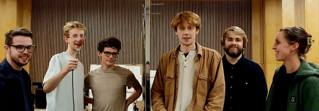 Performers from left: Andreas Hellesøy, Sebastian Lindland, Åsmund Soldal, Jonas Evenstad (artistic leader), Martin Kvalø, Nora Sjøgren